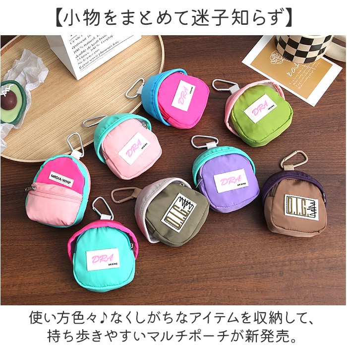 | 商品説明 | 【小物をまとめて迷子知らず】使い方色々♪なくしがちなアイテムを収納して、持ち歩きやすいマルチポーチが新発売。【携帯に便利なコンパクトサイズ】手のひらに乗るほどのサイズ感。ミニバッグにもすっぽり収まり、手軽に持ち運べるのが嬉しい【持ち手やフックに取り付け可能】カラビナを搭載し、バッグの持ち手やフックに取り付け可能!より携帯に便利な作りに。【細々とした物をざっくりIN】アクセサリーや目薬、小銭を入れるポーチとして活躍。お子さまの見守りGPS入れにも☆【可愛く持てるポップな見た目】英字ロゴとバイカラーを組み合わせたデザインでポップな見た目がGOOD。(※)カラーの配置やロゴなどの見た目はタイプにより異なります。【仕分けて収納できるタイプも】アウトポケットを搭載したタイプもあり小物が仕分けて収納可能。(※)タイプによりアウトポケットがない物もございます。予めご了承ください。 |