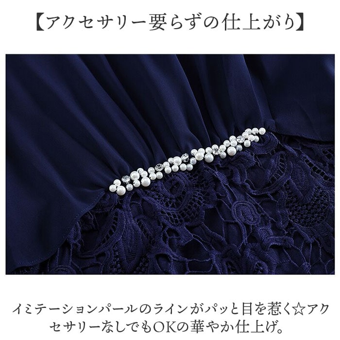 | 商品説明 | 【レース×パールで大人の華やかさ♪】お呼ばれやフォーマルシーンにぴったりな、フォーマルワンピースが登場。【アクセサリー要らずの仕上がり】イミテーションパールのラインがパッと目を惹く☆アクセサリーなしでもOKの華やか仕上げ。【異素材の切替で表情豊かに♪】シフォンとレースの切り替えデザインが新しく、豊かな表情を演出。こなれ感のあるデザイン性【さりげなく体型カバーをしてくれる】気になる二の腕と腰周りをカバーするデザイン。露出を抑え、洗練された上品さをプラス。【デコルテをキレイ魅せするネック】少し広めに開いたVネックは、デコルテをキレイに見せる。女性らしい印象になるのがポイント。【入学式、発表会、お呼ばれなどに】幅広いシーンで着用できる☆ひとつは欲しい、マストアイテム。 |