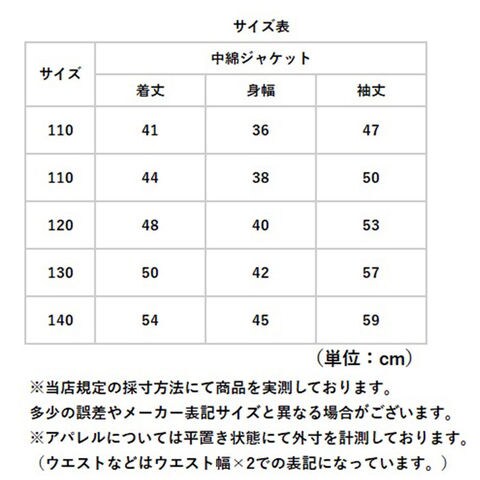 | サイズ | [キッズ] ・100cm ・110cm ・120cm ・130cm ・140cm ※サイズについて詳細は、商品画像の中にあるサイズ表をご覧くださいませ。 |