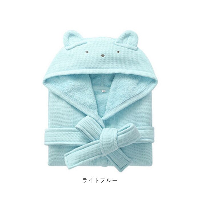 キッズバスローブ ルームウェア 綿100% yketyy03【ライトブルー】【S】