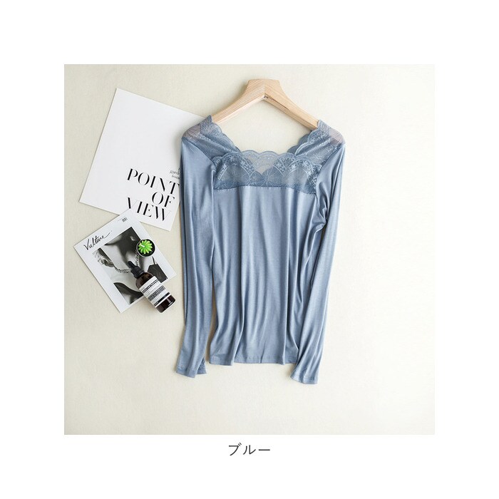 レディースインナー 花柄レース 長袖 ykfal8114【ブルー】【フリーサイズ】
