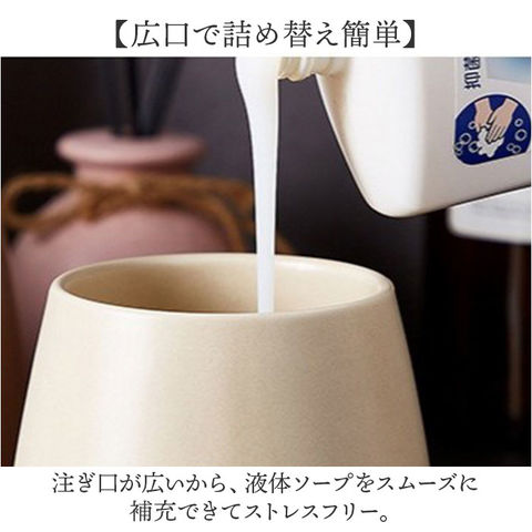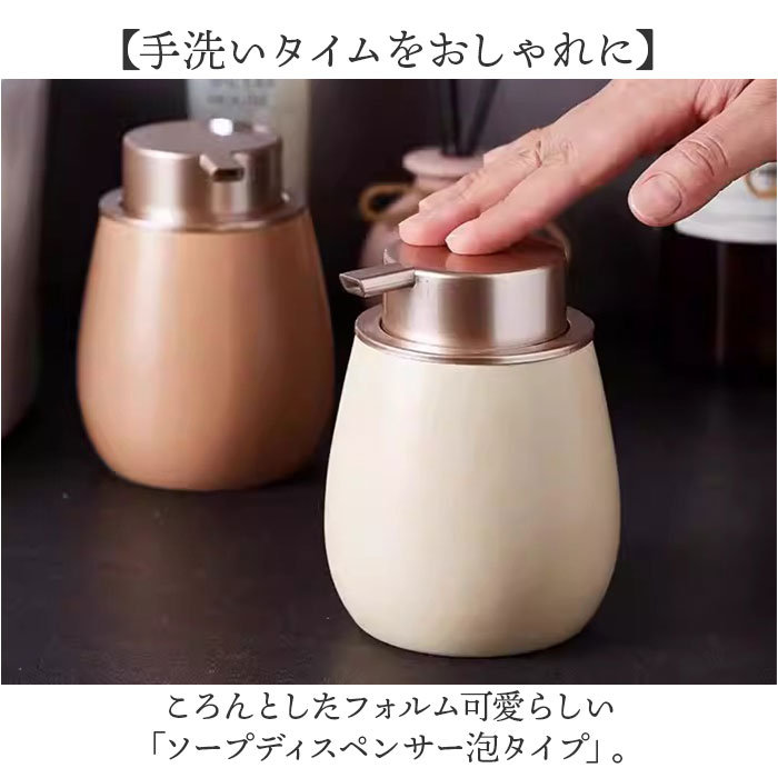 商品説明【手洗いタイムをおしゃれに】ころんとしたフォルム可愛らしい「ソープディスペンサー泡タイプ」。【洗面台をワンランクアップ】サラっとしたマットな質感の陶器製。丈夫で高級感があるのがポイント◎【やさしい泡タイプ】ワンプッシュできめ細かな泡が出るから、手肌に優しくお子様もしっかり洗える♪【広口で詰め替え簡単】注ぎ口が広いから、液体ソープをスムーズに補充できてストレスフリー。