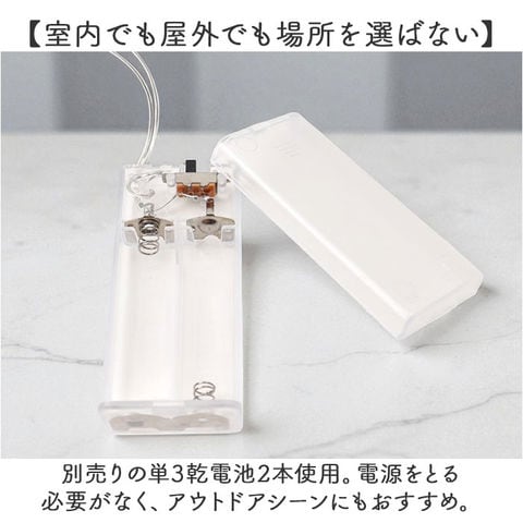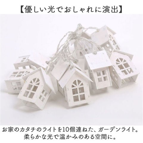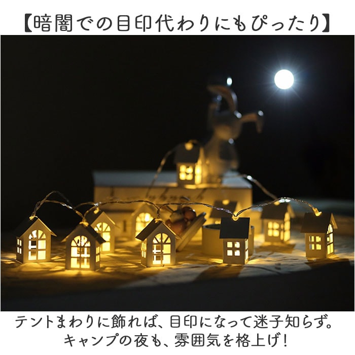 | 商品説明 | 【手軽な装飾で、リラックス空間に】心地よい光を照らす♪「ガーランドライト キャンプデコレーション 3個セット」。【優しい光でおしゃれに演出】お家のカタチのライトを10個連ねた、ガーデンライト。柔らかな光で温かみのある空間に。【室内でも屋外でも場所を選ばない】別売りの単3乾電池2本使用。電源をとる必要がなく、アウトドアシーンにもおすすめ。【暗闇での目印代わりにもぴったり】テントまわりに飾れば目印になって迷子知らず。キャンプの夜も、雰囲気を格上げ!【1日中楽しめる2way仕様】自宅の間接照明としてはもちろん、明るい時間はインテリアとして。置いておくだけでおしゃれ♪ |