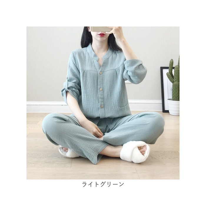 ガーゼルームウェア パジャマ 綿100%【ライトグリーン】【L】