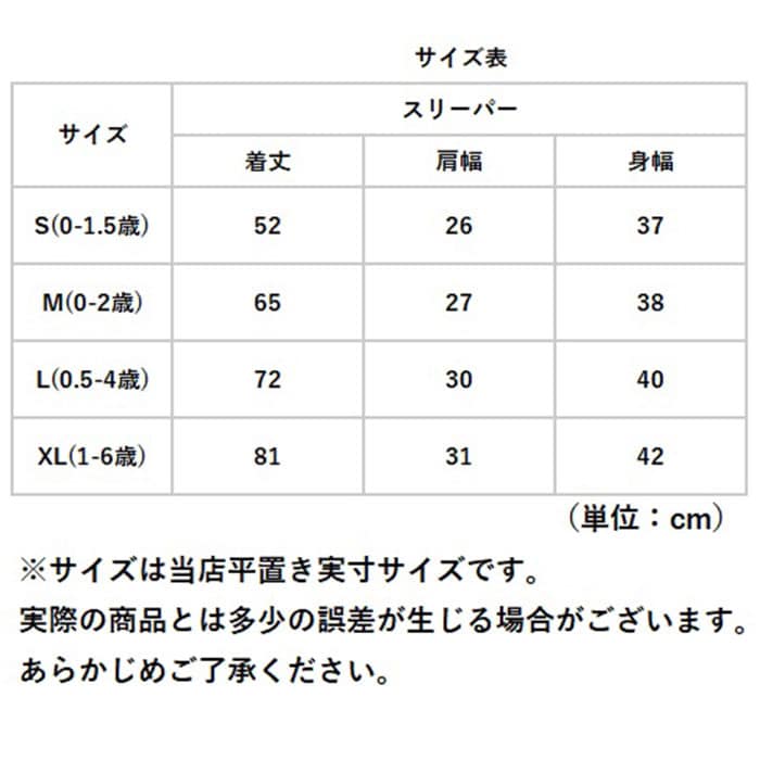 | サイズ | [ベビー] ・S(0-1.5歳) ・M(0-2歳) ・L(0.5-4歳) ・XL(1-6歳) ※サイズについて詳細は、商品画像の中にあるサイズ表をご覧くださいませ。 |