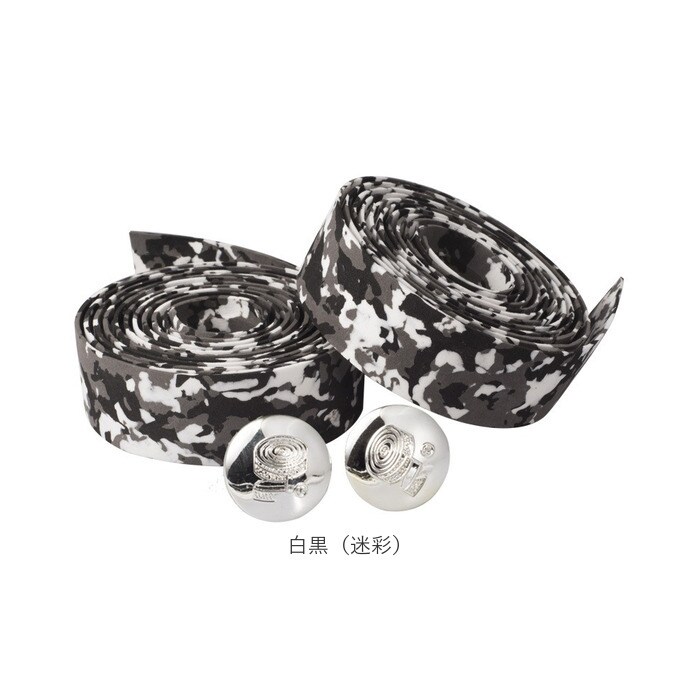 バーテープ エンドキャップ付き 2個セット【白黒(迷彩)】【バーテープ2個セット】