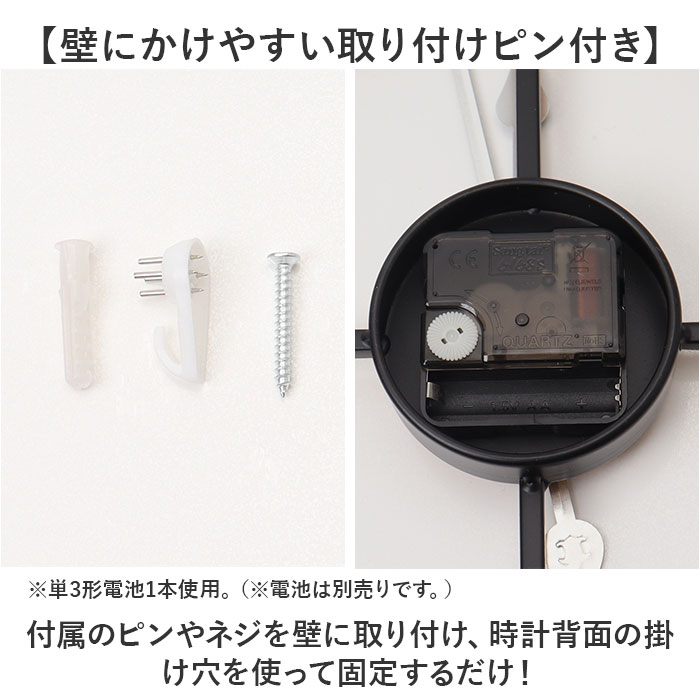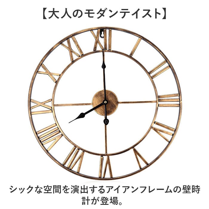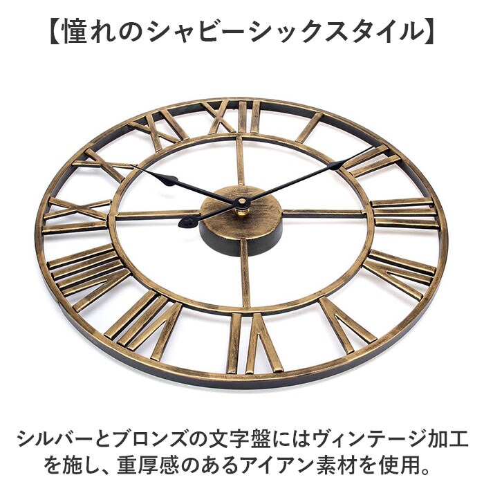 | 商品説明 | 【大人のモダンテイスト】シックな空間を演出するアイアンフレームの壁時計が登場。【憧れのシャビーシックスタイル】シルバーとブロンズの文字盤にはヴィンテージ加工を施し、重厚感のあるアイアン素材を使用。【秒針なしの静音設計】秒針がない静音タイプなので、寝室用時計としてもおすすめ。【壁にかけやすい取り付けピン付き】付属のピンやネジを壁に取り付け、時計背面の掛け穴を使って固定するだけ!(※)単3形電池1本使用。(※電池は別売りです。)【こなれ感をプラス】使い込んだような味わいのある素材感で、ヴィンテージ家具やインテリアと相性抜群のアイテム。【ギフトにもおすすめ】どんなお部屋にもマッチするシンプルなデザイン。新築祝いやお引越しなどギフトにもおすすめ。 |