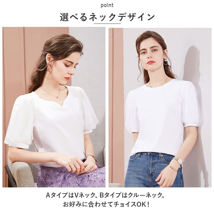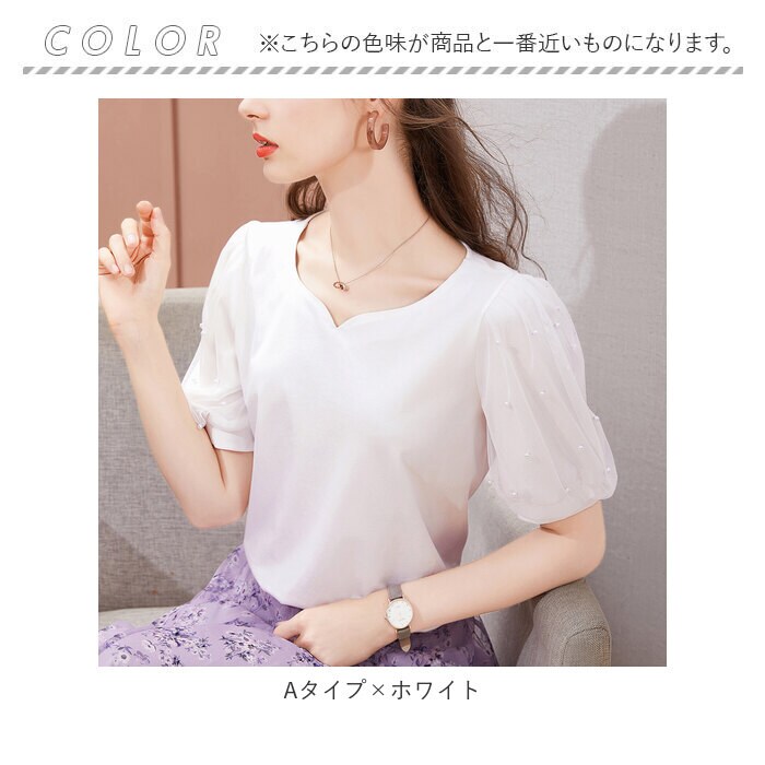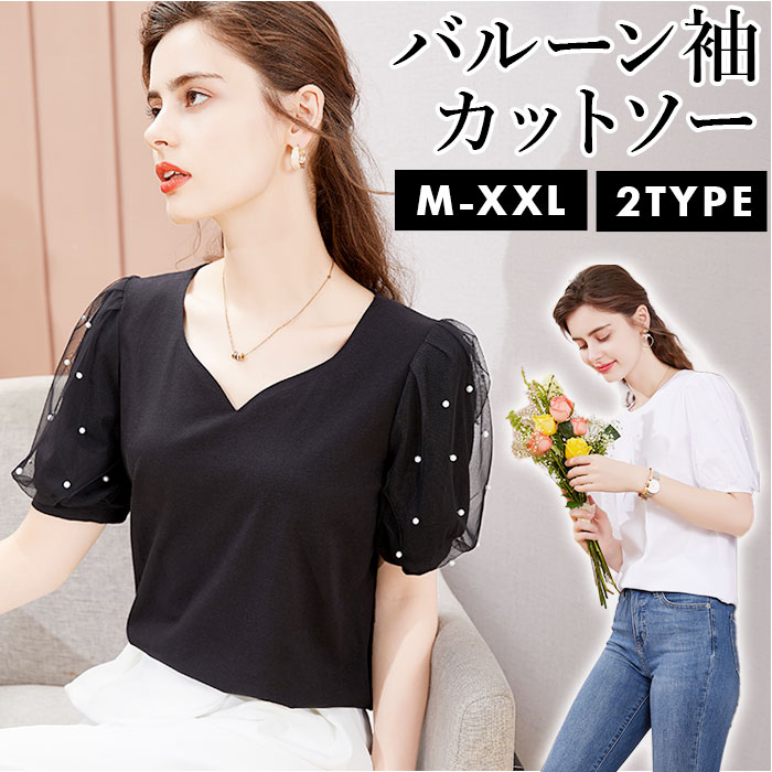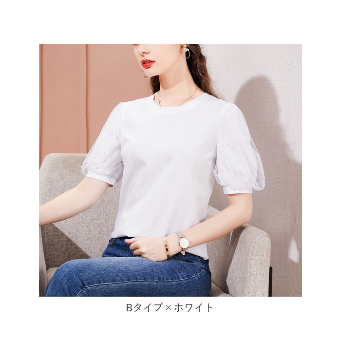 バルーン袖カットソー 半袖 ykj185【Bタイプ×ホワイト】【XL】