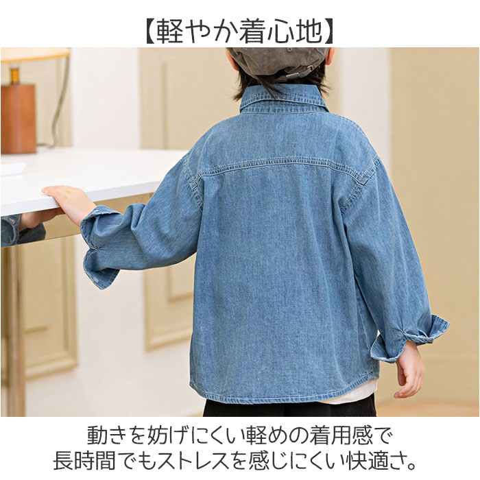 | 商品説明 | 【毎日使えるデニム】シンプルで合わせやすく毎日のコーデに活躍するキッズ向けデニム長袖シャツ。【着回し自在】デニム素材で季節を問わず合わせやすく頼れる長袖シャツ定番トップス的!【体型ゆったり】ほどよくゆとりあるシルエットでお子さんの動きやすさ重視の安心設計〇【軽やか着心地】動きを妨げにくい軽めの着用感で長時間でもストレスを感じにくい快適さ。【コットン素材】肌当たりやさしいコットン生地でカジュアルからお出かけまで活躍する万能さ◎ |