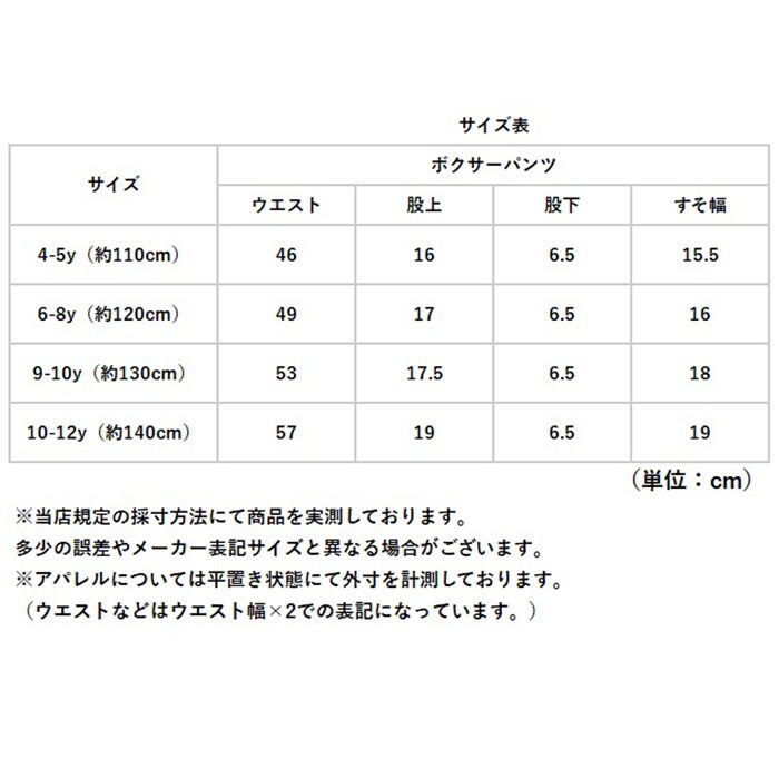 | サイズ | [ボーイズ] ・4-5y(約110cm) ・6-8y(約120cm) ・9-10y(約130cm) ・10-12y(約140cm) ※サイズについて詳細は、商品画像の中にあるサイズ表をご覧くださいませ。 |