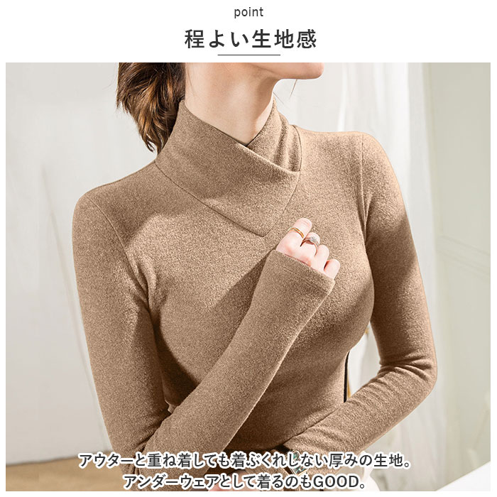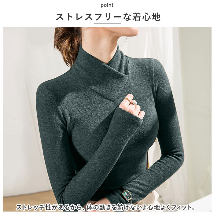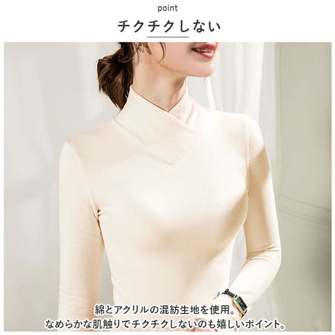 | 商品説明 | なめらかな肌触りが嬉しい長袖トップスが発売♪【あったか肌着】長袖タイプでしっかりあたたかい。ピタッと身体にフィットするので、熱を逃さずにキープできる。【チクチクしない】綿とアクリルの混紡生地を使用。なめらかな肌触りでチクチクしないのも嬉しいポイント。【ハイネック】首元まであったかく包み込む、ハイネックタイプ。クロスデザインになっているのもポイント。【ストレスフリーな着心地】ストレッチ性があるから、体の動きを妨げない♪心地よくフィット。【程よい生地感】アウターと重ね着しても着ぶくれしない厚みの生地。アンダーウェアとして着るのもGOOD。【選べるカラー】色違いで揃えたくなるカラーバリエーション☆デイリー使いに最適なシンプルデザイン。 |