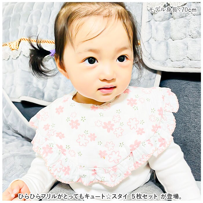 | 商品説明 | ひらひらフリルがとってもキュート☆スタイ 5枚セット が登場。【ひらひらフリル】ひらひらフリルが360度!後ろ姿まで、とってもキュートなスタイ☆こっくりカラーとの組み合わせで、甘くなりぎない可愛さが魅力。【いろんなデザインを楽しめる】嬉しい5枚セットなので、毎日いろんなデザインを楽しめる!洗い替え用にも使え、汚れたら気軽に交換できるのも嬉しいポイント!【こっくりカラー】くすみ感が絶妙な、こっくりカラーで統一。どの色も可愛い!ガーリーな柄だけど、落ち着きのあるナチュラルな雰囲気に。【コットン使用】コットン使用を使用した、柔らかい生地。汗やよだれをしっかりと吸収してくれる。お肌に触れるモノだから、安心の優しい素材。【スナップボタン仕様】首元にはスナップボタンつき。パチッと留めるだけなので着用も簡単。2つ搭載しているので、サイズの調節ができ、長く使える!【贈り物にも】出産祝いなどの贈り物にぴったり!女の子に似合う可愛いアイテムなのできっと喜ばれる。 |