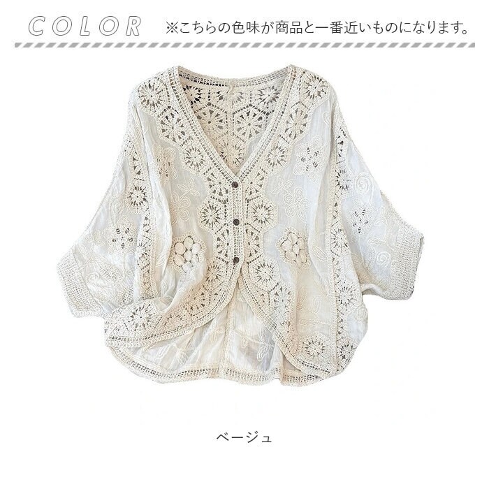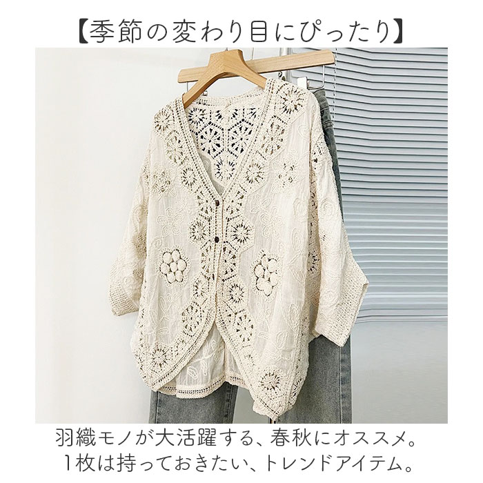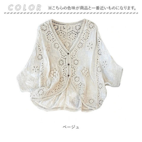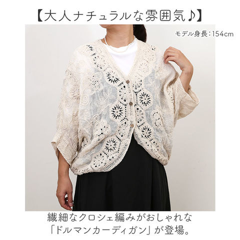 カーディガン ドルマン クロシェ編み【ベージュ】