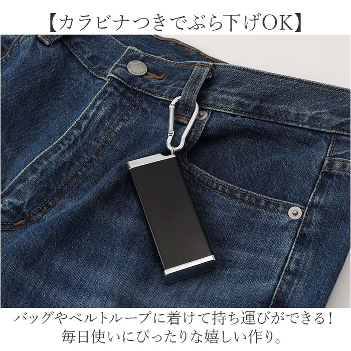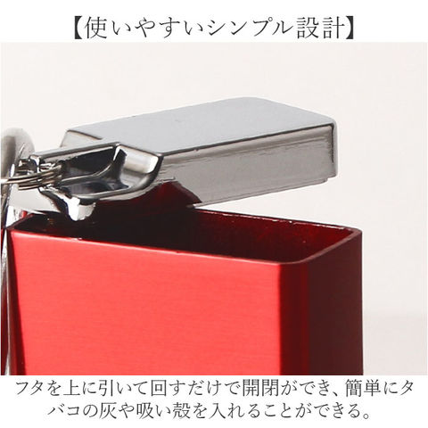 商品説明【手のひらサイズでスタイリッシュ!】バッグなどにぶら下げOKの「携帯灰皿カラビナ付き」が登場。【使いやすいシンプル設計】フタを上に引いて回すだけで開閉ができ、簡単にタバコの灰や吸い殻を入れることができる。【ニオイ対策にもぴったり!】密閉度が高いので、ニオイやモレをしっかりシャットアウト!吸わない人への配慮ができる◎【キーホルダーみたいにおしゃれ♪】灰皿に見えない、スタイリッシュなデザイン。ONもOFFも持てるシンプルさが魅力。【持ち歩きに最適なサイズ】片手に収まるコンパクトさ。バッグの隙間に入るから、ミニマルにお出かけしたい方にもGOOD。【カラビナつきでぶら下げOK】バッグやベルトループに着けて持ち運びができる!毎日使いにぴったりな嬉しい作り。