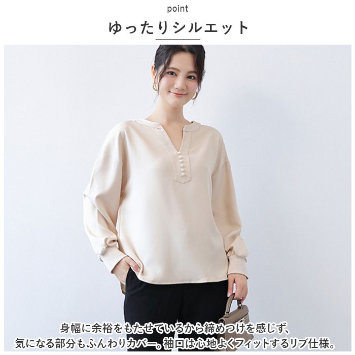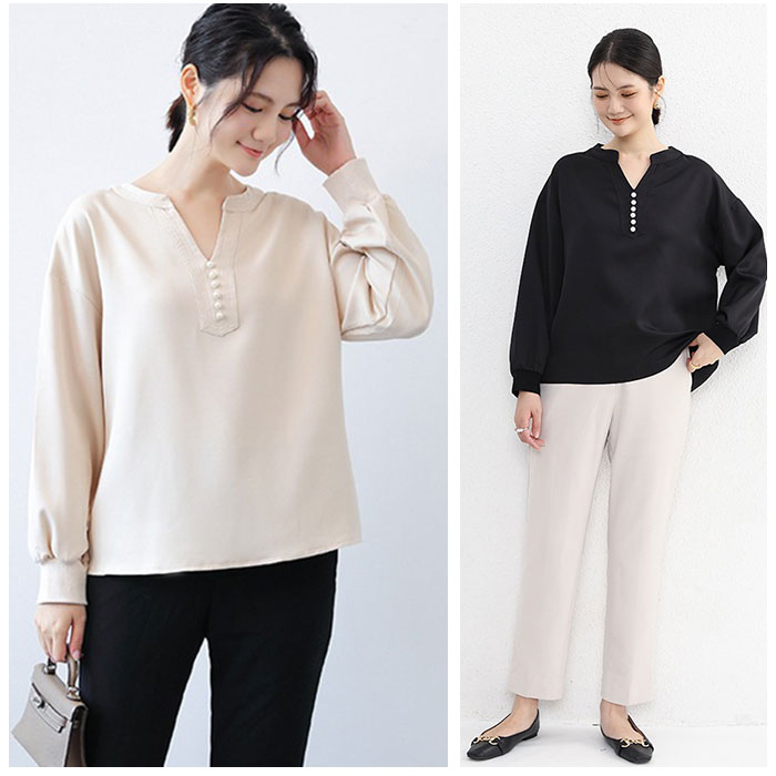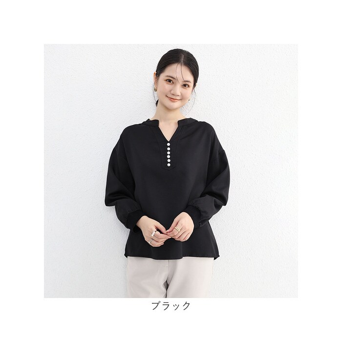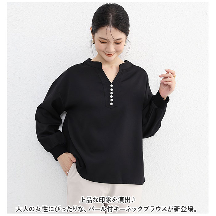 パール付キーネックブラウス ykkrrt2352【アイボリー】