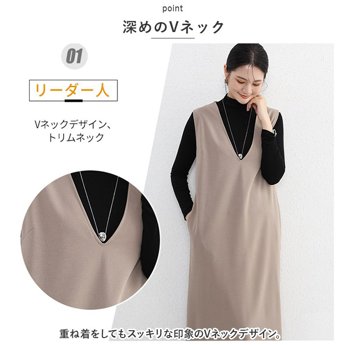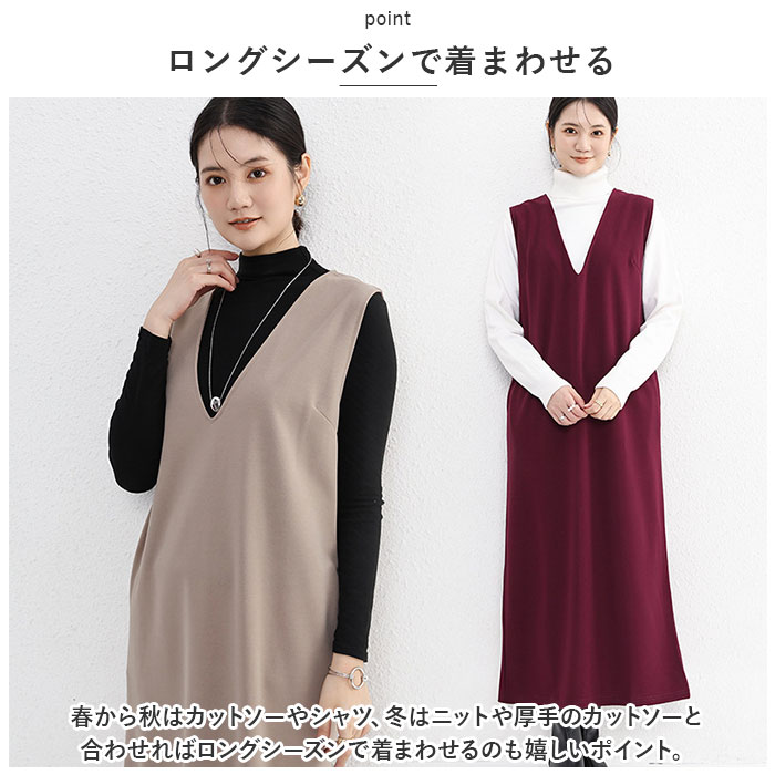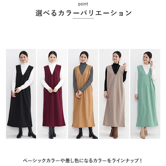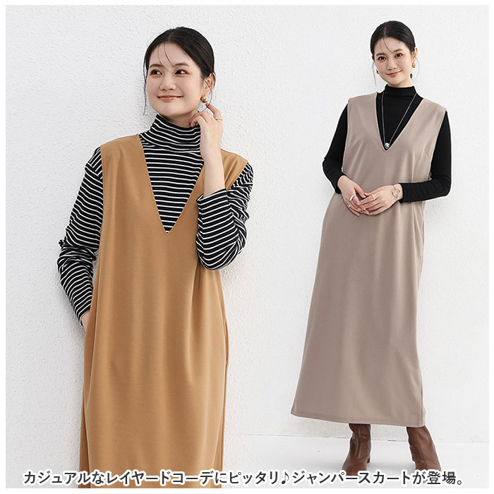 | 商品説明 | カジュアルなレイヤードコーデにピッタリ♪ジャンパースカートが登場。【深めのVネック】重ね着をしてもスッキリな印象のVネックデザイン。【ラインをふんわりカバー!】ゆったりとしたシルエットでストレスフリーな着心地◎身体のラインをふんわりカバーできるのも嬉しいポイント。【スリット入り】バックスリット入りだから、足さばきラクラク。【ロングシーズンで着まわせる】春から秋はカットソーやシャツ、冬はニットや厚手のカットソーと合わせればロングシーズンで着まわせるのも嬉しいポイント。【サイドポケット付き】スマホやハンカチが入るポケットをサイドに配置。【選べるカラーバリエーション】ベーシックカラーや差し色になるカラーをラインナップ! |