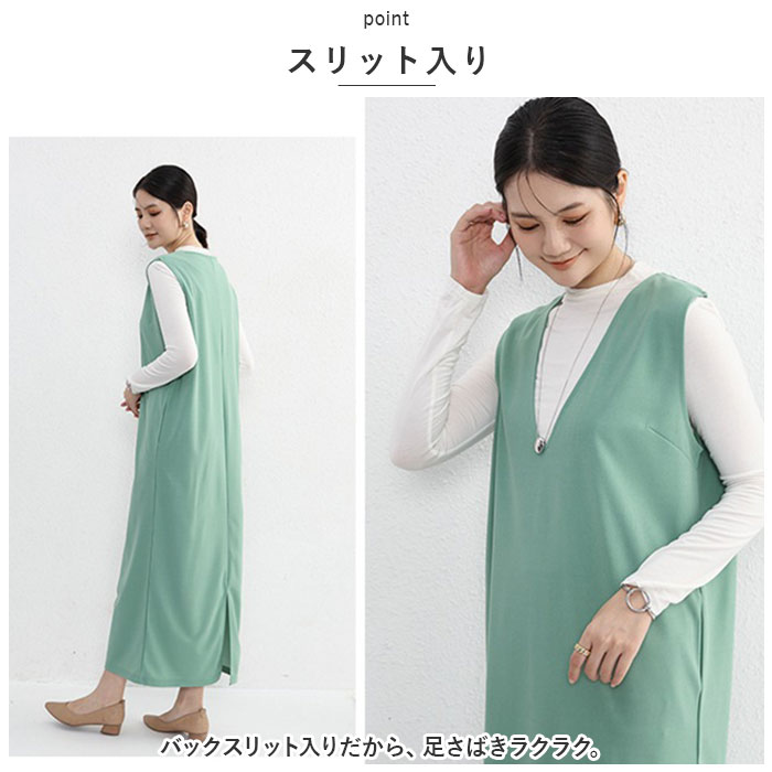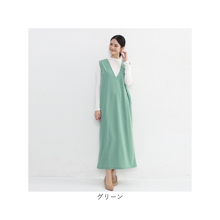ジャンパースカート Vネックワンピース ykkrrt3531【グリーン】【M】