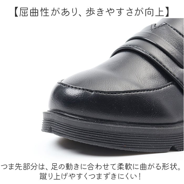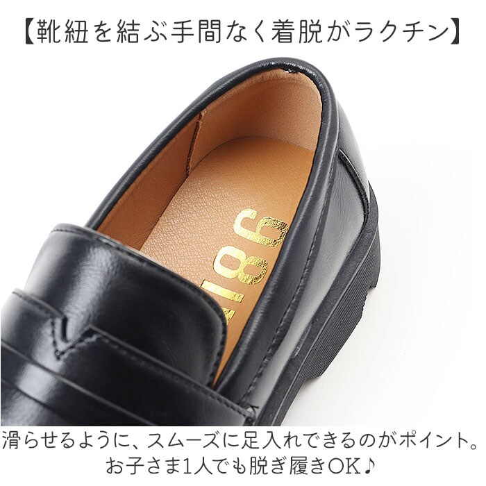 | 商品説明 | 【マルチに活躍◎シンプルローファー】・1足持っていれば、ヘビロテ確定☆色んなシーンで使える「キッズフォーマルシューズ」。【学生靴のような定番デザイン】甲の部分に切り込みを入れた装飾を施した、コインローファー。コーデを選ばない仕上がり。【靴紐を結ぶ手間なく着脱がラクチン】滑らせるように、スムーズに足入れできるのがポイント。お子さま1人でも脱ぎ履きOK♪【屈曲性があり、歩きやすさが向上】つま先部分は、足の動きに合わせて柔軟に曲がる形状。蹴り上げやすくつまずきにくい!【疲れにくく安定した歩行をサポート】少し厚みを出しつつ、前後差を抑えたソール。滑りにくいよう凹凸もプラス。【本革のような面倒なお手入れは不要】傷や汚れに強いPU素材。お手入れも拭き取るだけなので、気軽に履けるのが嬉しい!【特別な日も普段使いもお任せ】イベントやお呼ばれシーン、普段のお出かけにも。男の子も女の子も履けるベーシックカラー。 |