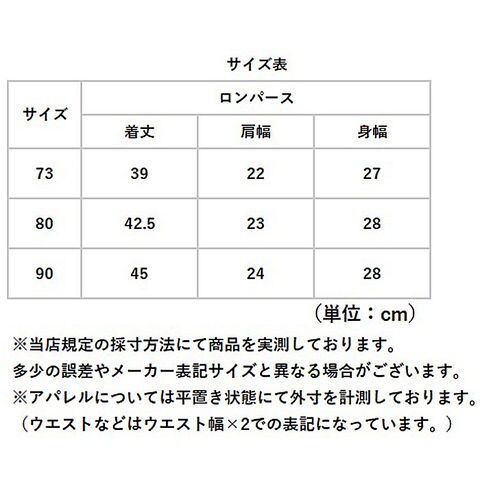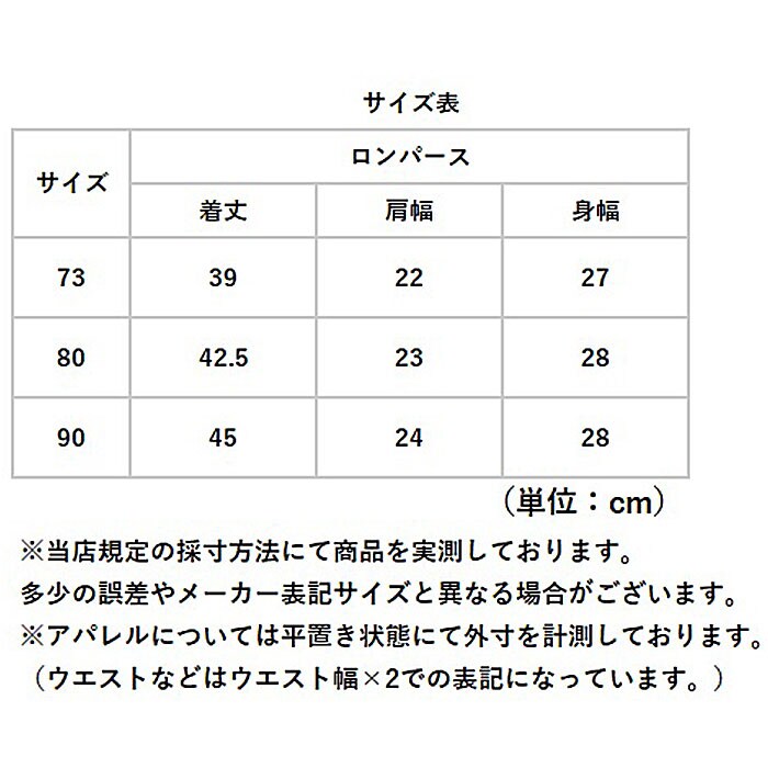 | サイズ | [ベビー] ・73cm ・80cm ・90cm ※サイズについて詳細は、商品画像の中にあるサイズ表をご覧くださいませ。 |