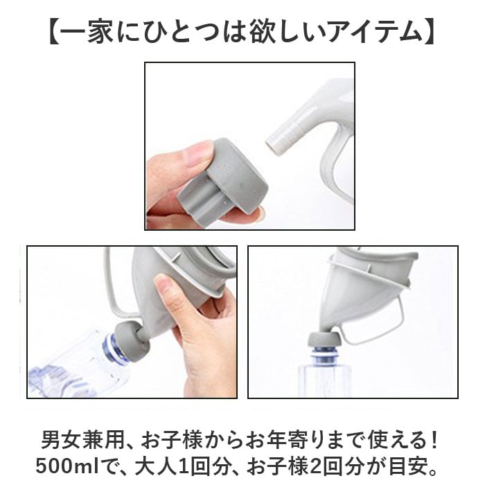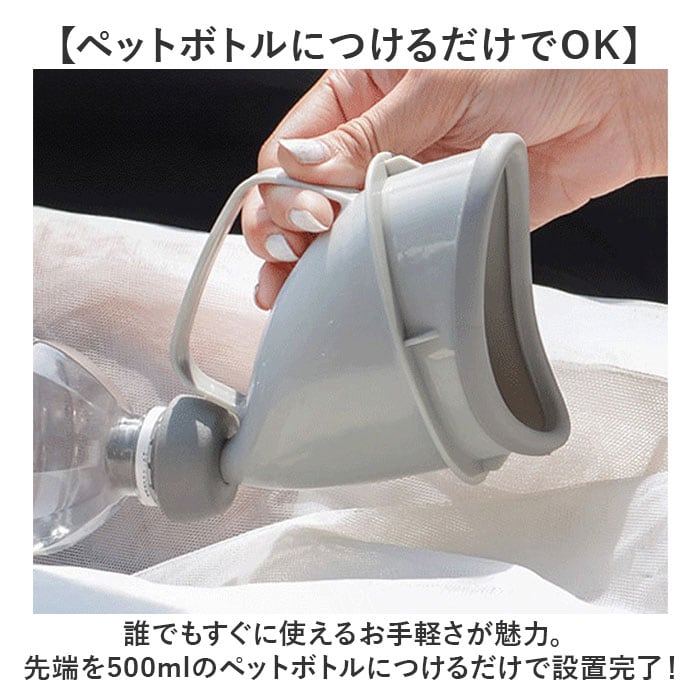 | 商品説明 | 【手軽に使えるコンパクトさ◎】男女兼用、丸洗いOKだから家族みんなで使える!「非常用携帯トイレ」が登場。【ペットボトルにつけるだけでOK】誰でもすぐに使えるお手軽さが魅力。先端を500mlのペットボトルにつけるだけで設置完了!【一家にひとつは欲しいアイテム】男女兼用、お子様からお年寄りまで使える!500mlで、大人1回分、お子様2回分が目安。【優しいソフトタッチで安心】肌にあたる部分はソフトな作り。男性も女性も安心して使えるのがポイント。【取手つきだから安定する】持ちやすい取手つきで、自分で支えやすく安定感バッチリ。お子様もひとりで使いやすい。【災害時以外にも大活躍!】災害時はもちろん、断水や渋滞の車内、アウトドアや釣りなどでも◎コンパクトに持ち運びOK。【何度も繰り返し使える!】部品を分解して、水洗いできる!衛生的に共有して使える。何度も使えるからエコロジー◎ |