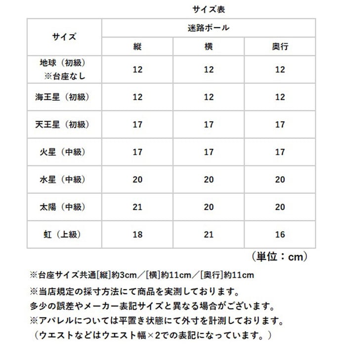 | サイズ | ・地球(初級) ・海王星(初級) ・天王星(初級) ・火星(中級) ・水星(中級) ・太陽(中級) ・虹(上級) ※サイズについて詳細は、商品画像の中にあるサイズ表をご覧くださいませ。 |