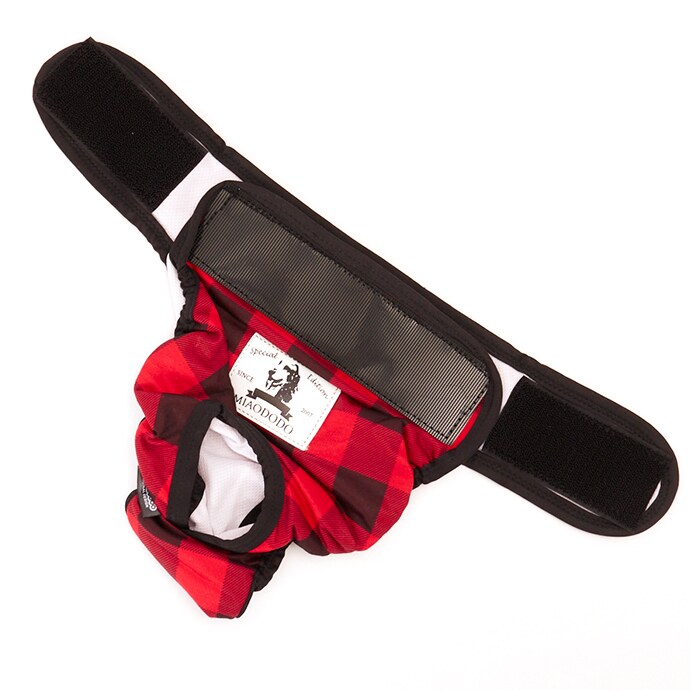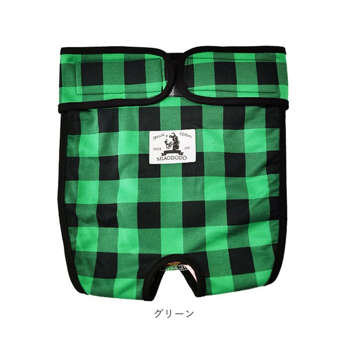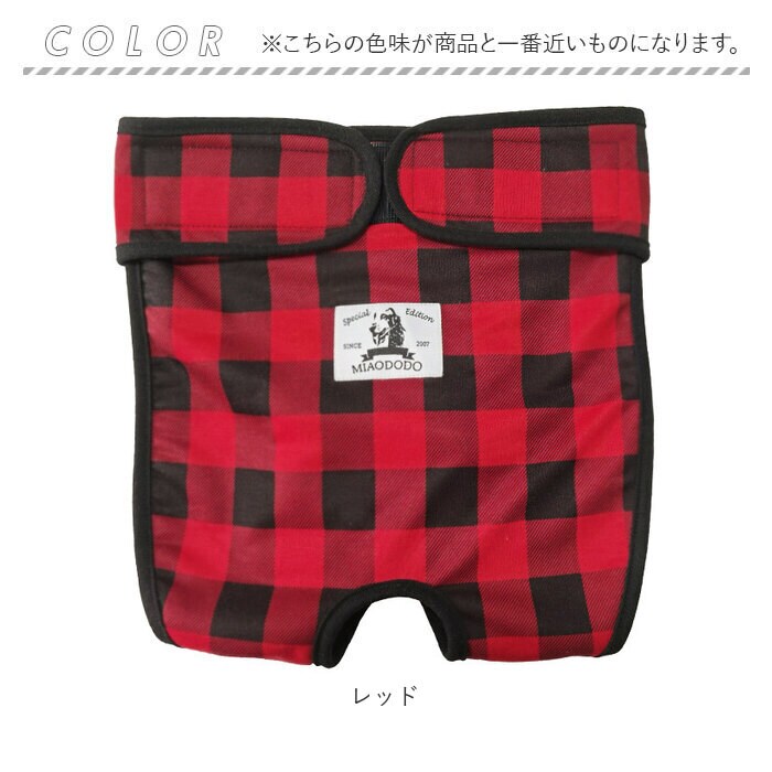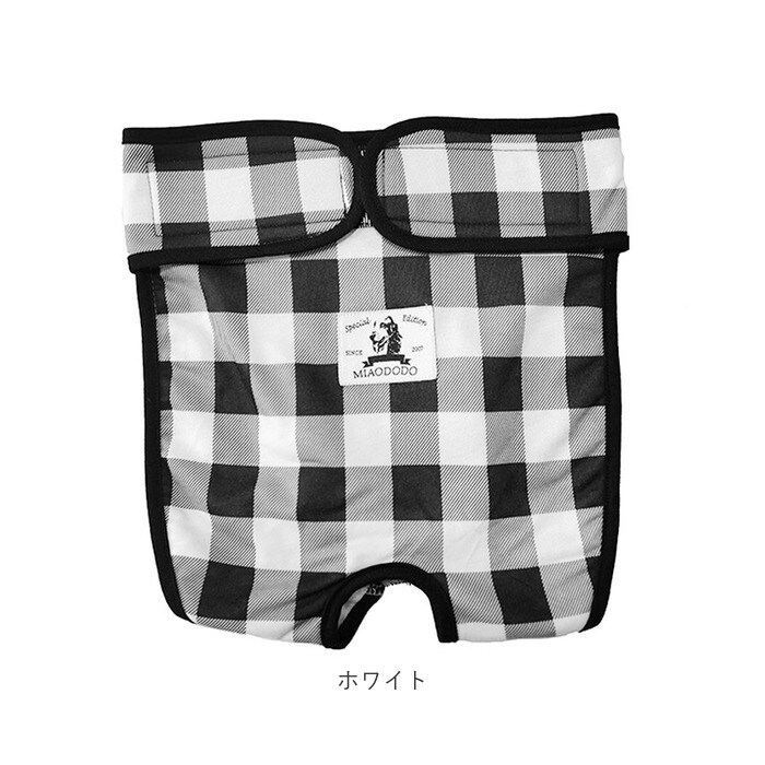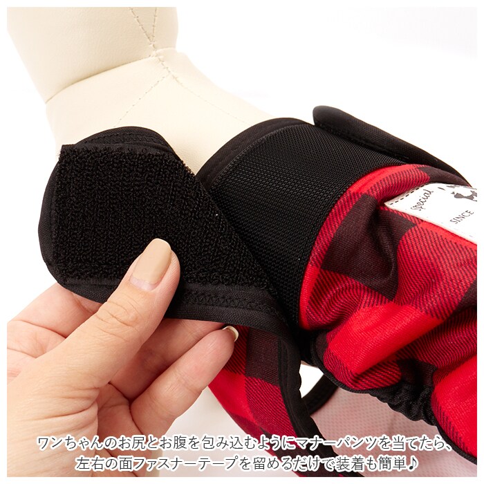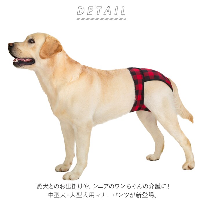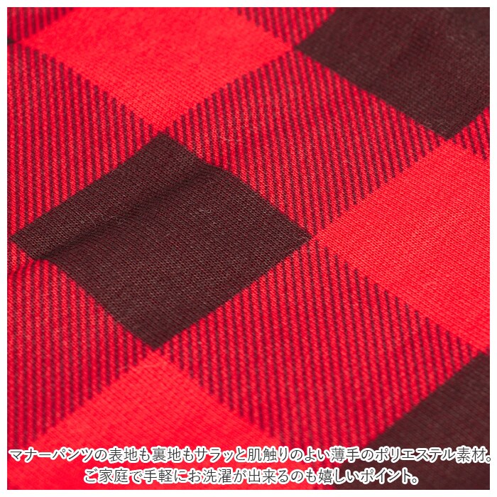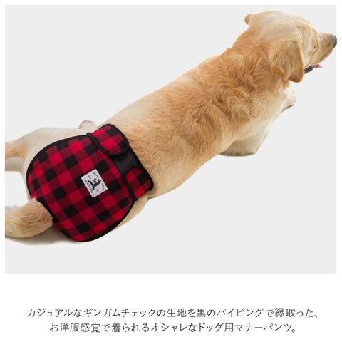 | 商品説明 | 愛犬とのお出掛けや、シニアのワンちゃんの介護に!中型犬・大型犬用マナーパンツが新登場。カジュアルなギンガムチェックの生地を黒のパイピングで縁取った、お洋服感覚で着られるオシャレなドッグ用マナーパンツ。内側は目の細かいメッシュ生地を使用しているので、ワンちゃんのデリケートなお腹のお肌に優しく、通気性もばっちり。クロッチ部分に、市販の使い捨てタイプの吸水パッドを当てておくことで、生理時や急なおしっこでもより安心!ワンちゃんのお尻とお腹を包み込むようにマナーパンツを当てたら、左右の面ファスナーテープを留めるだけで装着も簡単♪尻尾が出せるように、お尻部分が丸く開いたデザインなので、窮屈感がなく着用時のストレスフリー♪マナーパンツの表地も裏地もサラッと肌触りのよい薄手のポリエステル素材。ご家庭で手軽にお洗濯が出来るのも嬉しいポイント。旅行先でのそそうや生理が気になってしまう飼い主さん、シニアのワンちゃんの介護をされている方に最適。S・M・L・XLサイズまでの4サイズ展開で、柴犬やコーギーなどの中型犬から、ゴールデンレトリーバーのような大型犬まで、ぴったりサイズがチョイス可能♪ |