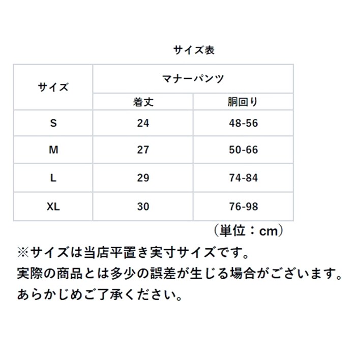 | サイズ | [マナーパンツ] ・Sサイズ ・Mサイズ ・Lサイズ ・XLサイズ ※サイズについて詳細は、商品画像の中にあるサイズ表をご覧くださいませ。 |