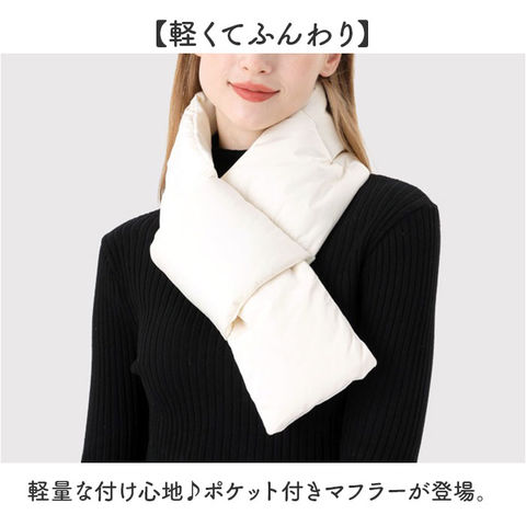 | 商品説明 | 【軽くてふんわり】軽量な付け心地♪ポケット付きマフラーが登場。【しっかり防寒】中綿が冷たい風をブロック!寒い日の強い味方♪【やさしい肌触り】サラッとした手触りの表地と、柔らかな裏地が首元を包み込んでくれる。【シンプルでスマート】シーンを選ばず使えるデザインで、コンパクトにたためるから持ち歩きに便利〇【ポケット付き】小物を収納できるオープンポケット付き。 |