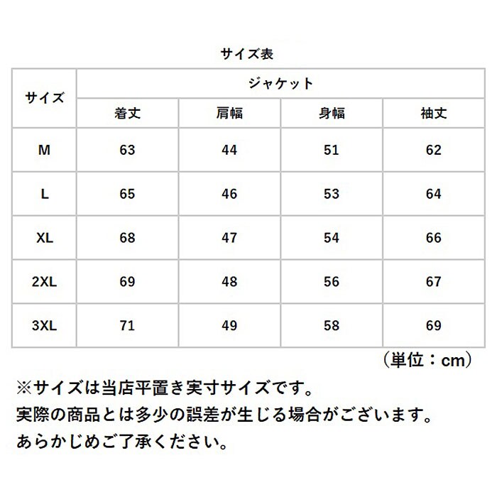 | サイズ | [メンズ] ・Mサイズ ・Lサイズ ・XLサイズ ・2XLサイズ ・3XLサイズ ※サイズについて詳細は、商品画像の中にあるサイズ表をご覧くださいませ。 |