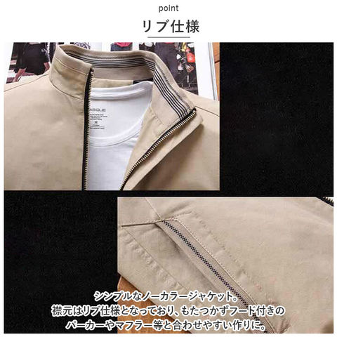 | 商品説明 | スッキリとしたシルエットのメンズジャケットが登場!【リブ仕様】シンプルなノーカラージャケット。襟元はリブ仕様となっており、もたつかずフード付きのパーカーやマフラー等と合わせやすい作りに。さらに袖口とジャケットの裾のリブ生地が手首や身体のラインに優しくフィット。【便利なポケット】フロント左右と内側に1つずつポケットを配置。【コットン素材】着心地の良いコットン素材なのでロングシーズン着用可能。【カジュアルデザイン】ジーンズやチノパンなどのボトムスと合わせれば、リラックス感のあるカジュアルコーデが即完成!【豊富なサイズとカラー】・M~3XLと豊富なサイズと合わせやすいカラー。1枚は持っておきたいファッションアイテム。 |