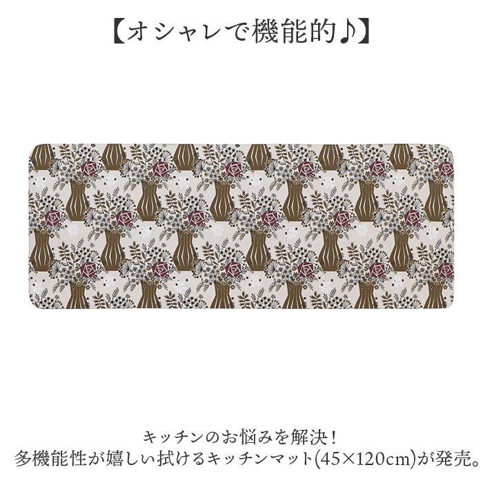 | 商品説明 | 【オシャレで機能的♪】キッチンのお悩みを解決!多機能性が嬉しい拭けるキッチンマット(45×120cm)が発売。【サッとひと拭きで簡単キレイ】水や汚れに強い塩化ビニル素材。汚れても布巾などでサッとひと拭きするだけでキレイに。【水回りシーンでも安心な防カビ】水気が多い水回りシーンでも安心な防カビ効果で、敷きっぱなしでもカビの発生を抑えてくれる【抗菌防臭効果で衛生的】嬉しい抗菌防臭機能も付いており、菌の繁殖を抑えニオイも抑制!キッチンの足元を清潔に保つ【掃除機で埃などを吸い取れる】カーペットを掃除するように、掃除機でホコリやゴミも簡単オフ!お手入れがより簡単に完了。【足裏にやさしいクッション】程よい厚みとクッション性で、もちっとした踏み心地。長時間の立ち仕事でも足が疲れにくい。【床を傷や凹みからガード】足裏に優しいのはもちろん、物を落としても衝撃を吸収し、床を傷や傷凹みから守る。【引き出し掃除ロボにも干渉なし】ストレスなくキッチンの引き出しを使える厚さ。お掃除ロボットも乗り上げ可能☆【火を使うキッチンでも安全】万が一マットに着火した際でも燃え広がりにくい、防炎性と難燃性に優れた素材。【マット裏側は滑り止め加工済み】裏側に細かな凹凸加工を施しマットがズレにくく、小さなお子様やペットがいるご家庭でも安心【一人暮らしやミニキッチンに】・45×120cmと小さめのサイズなので、一人暮らしのミニキッチン用にオススメ♪【買い替え不要の床暖房対応】引っ越しの際の買い替えや、季節によっての使い分けも不要な床暖房対応タイプ。【トレーニングやヨガマットにも】ふんわり身体に優しいクッション性で、ご自宅でのプチ筋トレやヨガマットにも大活躍。 |