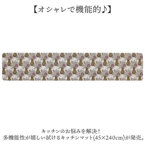 | 商品説明 | 【オシャレで機能的♪】キッチンのお悩みを解決!多機能性が嬉しい拭けるキッチンマット(45×240cm)が発売。【サッとひと拭きで簡単キレイ】水や汚れに強い塩化ビニル素材。汚れても布巾などでサッとひと拭きするだけでキレイに。【水回りシーンでも安心な防カビ】水気が多い水回りシーンでも安心な防カビ効果で、敷きっぱなしでもカビの発生を抑えてくれる【抗菌防臭効果で衛生的】嬉しい抗菌防臭機能も付いており、菌の繁殖を抑えニオイも抑制!キッチンの足元を清潔に保つ【掃除機で埃などを吸い取れる】カーペットを掃除するように、掃除機でホコリやゴミも簡単オフ!お手入れがより簡単に完了。【足裏にやさしいクッション】程よい厚みとクッション性で、もちっとした踏み心地。長時間の立ち仕事でも足が疲れにくい。【床を傷や凹みからガード】足裏に優しいのはもちろん、物を落としても衝撃を吸収し、床を傷や傷凹みから守る。【引き出し掃除ロボにも干渉なし】ストレスなくキッチンの引き出しを使える厚さ。お掃除ロボットも乗り上げ可能☆【火を使うキッチンでも安全】万が一マットに着火した際でも燃え広がりにくい、防炎性と難燃性に優れた素材。【マット裏側は滑り止め加工済み】裏側に細かな凹凸加工を施しマットがズレにくく、小さなお子様やペットがいるご家庭でも安心【買い替え不要の床暖房対応】引っ越しの際の買い替えや、季節によっての使い分けも不要な床暖房対応タイプ。【トレーニングやヨガマットにも】ふんわり身体に優しいクッション性で、ご自宅でのプチ筋トレやヨガマットにも大活躍。 |
