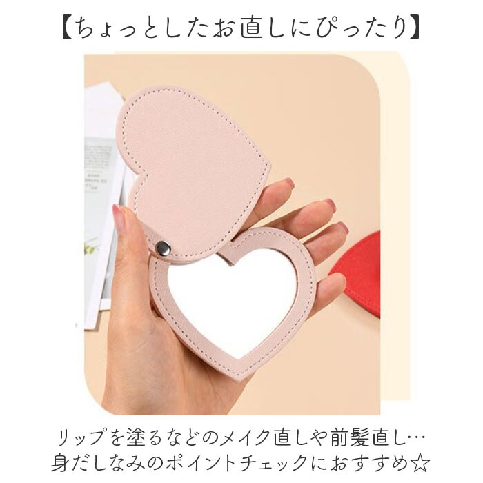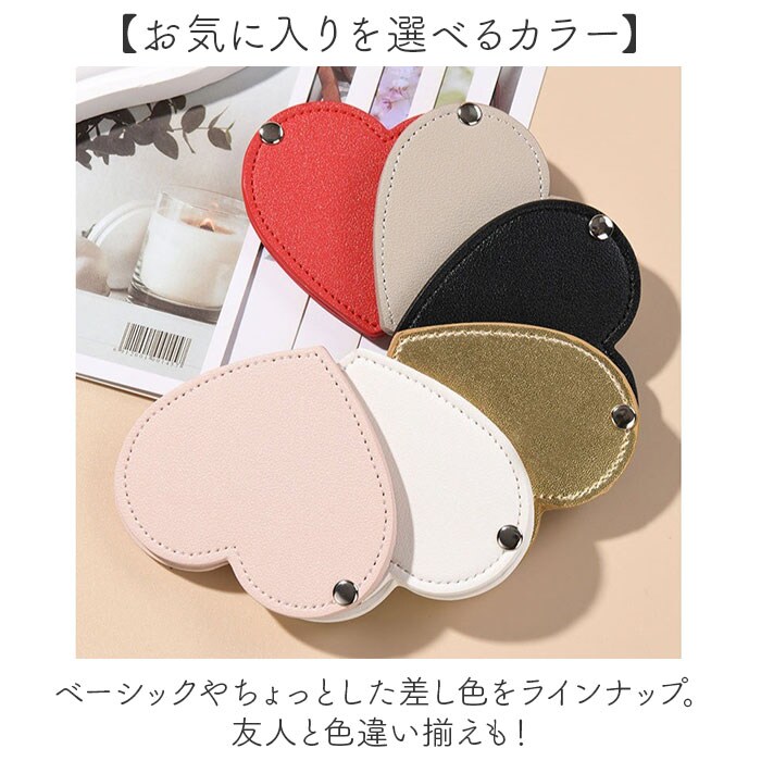 | 商品説明 | 【いつでもバッグに忍ばせてお出かけ】持ち運びに嬉しいサイズ感!シンプルで可愛らしい、ハート型の「コンパクトミラー」。【ちょっとしたお直しにぴったり】リップを塗るなどのメイク直しや前髪直し…身だしなみのポイントチェックにおすすめ☆【鏡の傷つきを防ぐスライドタイプ】ポーチやポケットに入れておいても、鏡面が傷つきにくく、ホコリなどからもガード。【360度回転式で使い勝手抜群】スライドさせると、360度回転!見やすく持ちやすいのも嬉しいポイント。【スマートに持ち歩けてとっても便利】ミニバッグなどにもすっぽり収まる、コンパクト設計。かさばらず、ポーチインもラクラク。【汚れなどに強くお手入れも簡単】表面の汚れや少しの水濡れは拭き取るだけ。面倒なお手入れ不要で、気軽に使えるアイテム。【お気に入りを選べるカラー】ベーシックやちょっとした差し色をラインナップ。友人と色違い揃えも! |