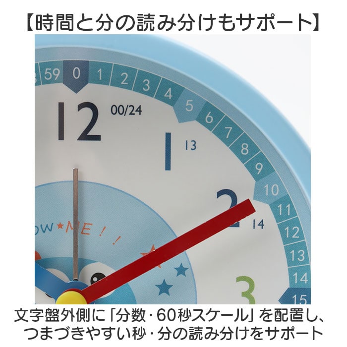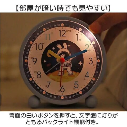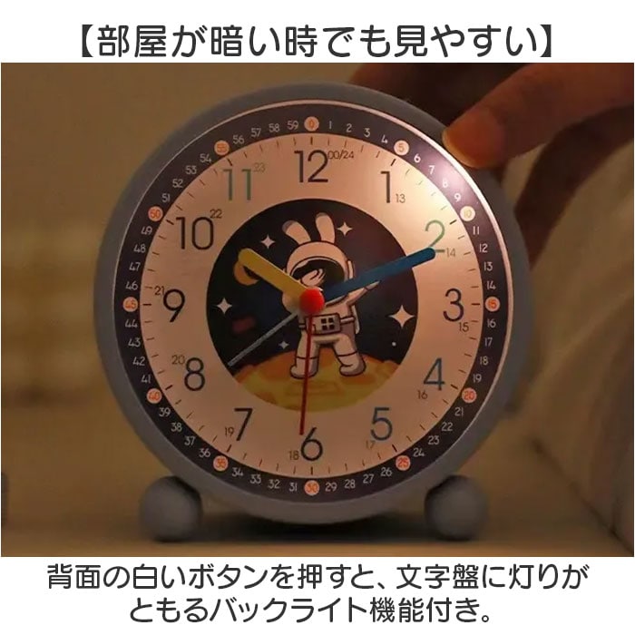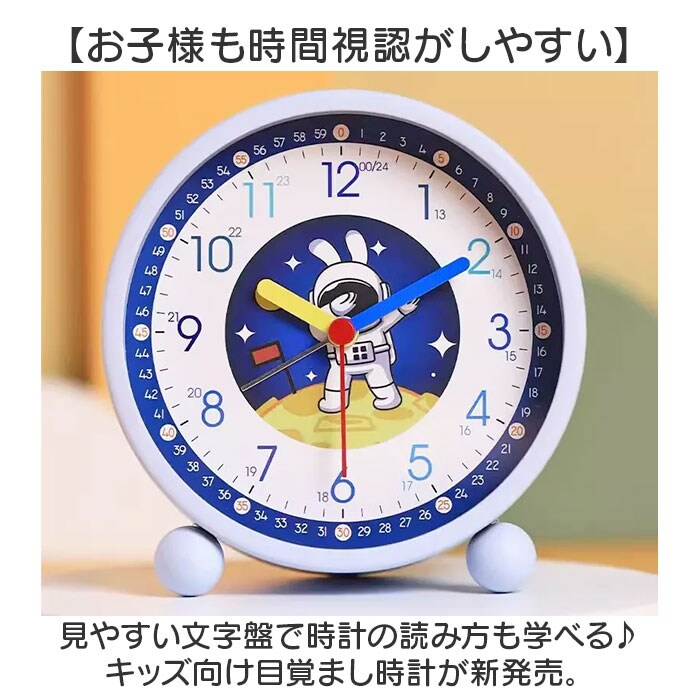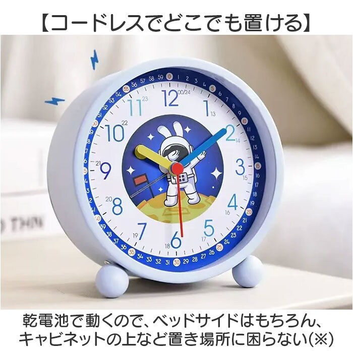 | 商品説明 | 【お子様も時間視認がしやすい】見やすい文字盤で時計の読み方も学べる♪キッズ向け目覚まし時計が新発売。【時間が見やすいカラフル仕様】カラフルに配色された文字盤でお子さまがパッと見やすいデザイン◎※(※)タイプにより文字盤のデザインが異なります。【時間と分の読み分けもサポート】文字盤外側に「分数・60秒スケール」を配置し、つまづきやすい秒・分の読み分けをサポート【時計の針も見やすく色分け】針も色分けすることで時間の読み取りをよりスムーズに※(※)タイプにより針のカラーが異なります【パッと目を惹くカラー】シンプルなラウンド型に、お部屋のどこに置いてもパッと目を惹く優しいカラーバリエーション【アラーム音でおしらせ】アラーム音でお目覚めの時間をお知らせ♪勉強などの終了時間を知らせるに使うのもGOOD。【静かな秒針で眠りを妨げない】静かな場所や夜中でも時計のコチコチ音が気にならないず睡眠を妨げない【部屋が暗い時でも見やすい】背面の白いボタンを押すと、文字盤に灯りがともるバックライト機能付き。【コードレスでどこでも置ける】乾電池で動くので、ベッドサイドはもちろん、キャビネットの上など置き場所に困らない※(※)単3型乾電池×1本使用。電池は別売りです【子ども部屋に最適のデザイン】動物や宇宙飛行士など可愛くポップなデザインが魅力的♪お気に入りがきっと見つかる♪【こども部屋に最適のデザイン】シンプルなラウンド型に、インテリアのアクセントになるパステルカラーのバリエーション。 |
