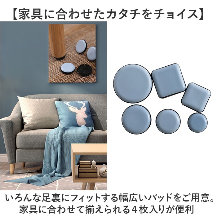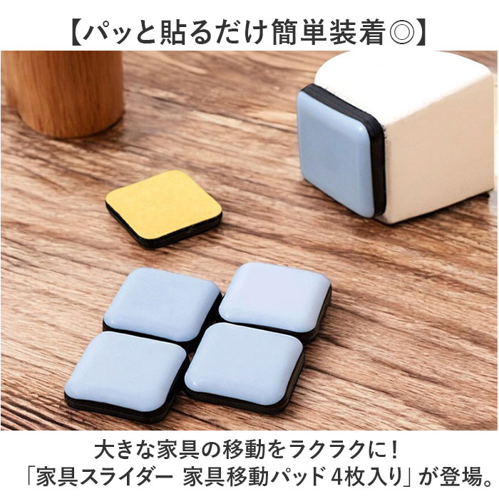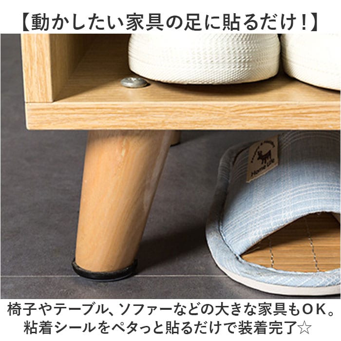 | 商品説明 | 【パッと貼るだけ簡単装着◎】大きな家具の移動をラクラクに!「家具スライダー 家具移動パッド 4枚入り」が登場。【動かしたい家具の足に貼るだけ!】椅子やテーブル、ソファーなどの大きな家具もOK。粘着シールをペタっと貼るだけで装着完了☆【フローリングや畳の傷つきと騒音に】耐摩耗性に優れたすべり面で、スムーズに家具をスライド。心配な床の傷つきや騒音の対策に。【強力な粘着性でしっかりくっつく】足裏にしっかり張り付きはがれにくい、強い粘着力がポイント。扱いやすいシールタイプ。【家具に合わせたカタチをチョイス】いろんな足裏にフィットする幅広いパッドをご用意。家具に合わせて揃えられる4枚入りが便利 |