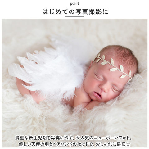 | 商品説明 | はじめての写真撮影に。ふわふわの羽で、まるでエンジェル♪「ニューボーンフォト 天使の羽」が登場。【はじめての写真撮影に】貴重な新生児期を写真に残す、大人気のニューボーンフォト。優しい天使の羽とヘアバンドのセットで、おしゃれに撮影☆【エンジェルに♪】羽のゴムを両腕に通して、装着完了。ゴムタイプで良く伸びるので、赤ちゃんの身体にも優しい◎背中から撮影すれば、まるでエンジェル♪【ふわふわエアリーな羽】本物の羽のような、ふわふわリアルな質感の羽を使用。赤ちゃんが触れても痛くない。【月桂樹のヘアバンド】月桂樹の葉がモチーフのヘアバンド。キラリと輝くシルバーが華やか。こちらもゴム仕様で安心。【男の子も女の子も】性別関係なく使えるアイテム。赤ちゃんが生まれるお家へギフトとしてもオススメ☆ |