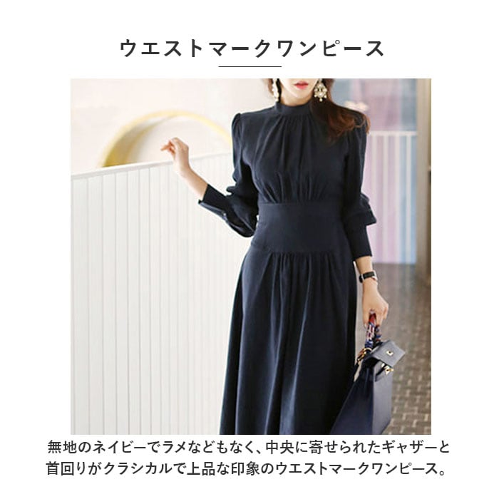 | 商品説明 | 【ウエストマークワンピース】無地のネイビーでラメなどもなく、中央に寄せられたギャザーと首回りがクラシカルで上品な印象のウエストマークワンピース。【脚長効果】ハイウエストにラインが入ったウエストマークは脚長効果に。【アレンジは無限大】何も付けずにシンプルにそのまま着ても、手持ちのベルトやスカーフなどを巻いても楽しめてアレンジは無限大!【女性らしさUP!】シワになりにくい素材で、ひらりと揺れるスカートが動きをしなやかに。腕の部分がふんわりとゆとりがあり、手首が細く見える長めの袖口で女性らしさUP!【色んなシーンで活躍】入学式や卒業式などのフォーマルシーンやパーティドレスとして、普段使いにも活躍。 |