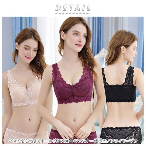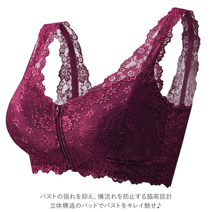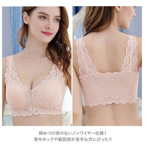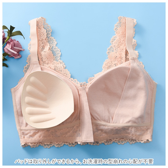 | 商品説明 | バストを心地よくホールド♪フロントファスナー仕様のノンワイヤーブラ。締めつけ感のないノンワイヤー仕様!背中ホックや窮屈感が苦手な方にぴったり。ナイトブラやマタニティブラとしてもおすすめ♪フロントファスナーで着脱がラクチン。授乳時も便利!バストの揺れを抑え、横流れを防止する脇高設計。立体構造のパッドでバストをキレイ魅せ♪パッドは取り外しができるから、お洗濯時の型崩れの心配が不要。太めの肩紐で、肩への負担を軽減。通気性の良い素材を採用しており、オールシーズン快適な付け心地◎上品な小花柄のレースデザインで、エレガントな雰囲気を演出♪ |