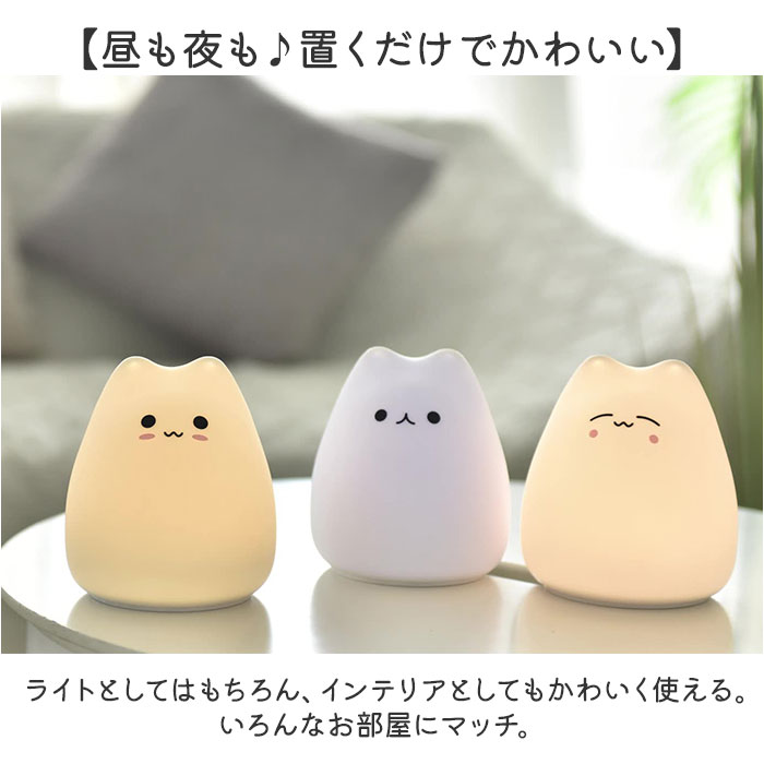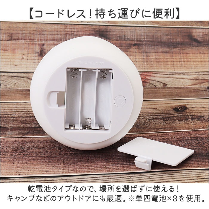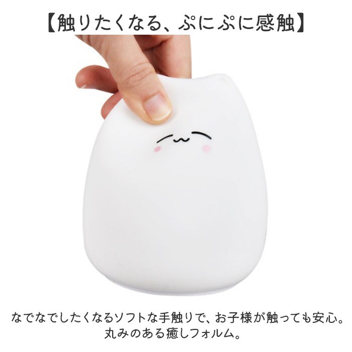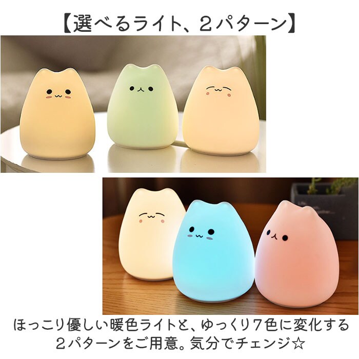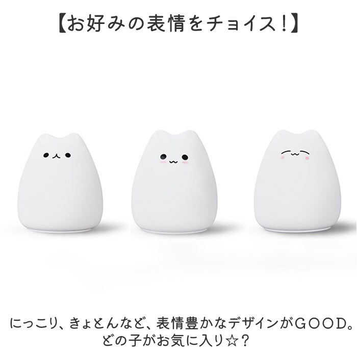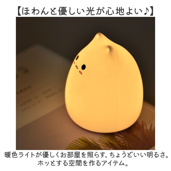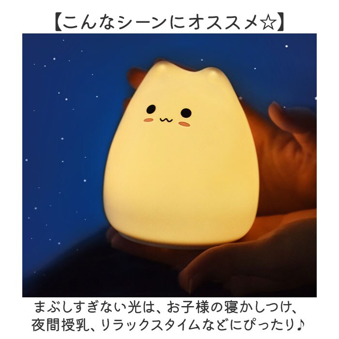 | 商品説明 | 【手触りぷにっと♪癒されるライト】寝室、子供部屋、夜間授乳、アウトドアに◎「ぷにぷにナイトライト テーブルランプ」が登場。【ほわんと優しい光が心地よい♪】暖色ライトが優しくお部屋を照らす、ちょうどいい明るさ。ホッとする空間を作るアイテム。【触りたくなる、ぷにぷに感触】なでなでしたくなるソフトな手触りで、お子様が触っても安心。丸みのある癒しフォルム。【昼も夜も♪置くだけでかわいい】ライトとしてはもちろん、インテリアとしてもかわいく使える。いろんなお部屋にマッチ。【トンっとタッチでON/OFF】本体に軽くタッチするだけの、イージーさがポイント!お子様も自分で簡単操作◎※本体底に、主電源ボタンがあります。【選べるライト、2パターン】ほっこり優しい暖色ライトと、ゆっくり7色に変化する2パターンをご用意。気分でチェンジ☆【コードレス!持ち運びに便利】乾電池タイプなので、場所を選ばずに使える!キャンプなどのアウトドアにも最適。※単四電池×3を使用。【お好みの表情をチョイス!】にっこり、きょとんなど、表情豊かなデザインがGOOD。どの子がお気に入り☆?【こんなシーンにオススメ☆】まぶしすぎない光は、お子様の寝かしつけ、夜間授乳、リラックスタイムなどにぴったり♪ |