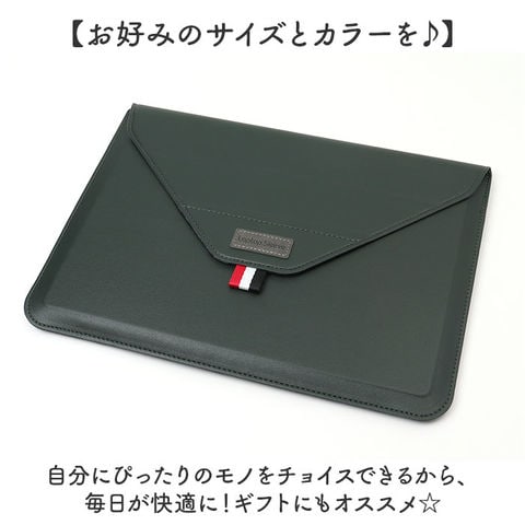 | 商品説明 | 【ケースとスタンドどっちもお任せ◎】クラッチバッグのようなデザイン☆「パソコンケース」が登場。【パソコンケースだけじゃない高機能】デバイスの収納はもちろん、PCスタンドとしても使える!さらに、マウスパッドにもなる◎【デバイスの熱逃がしも◎】スタンドを使うことで空気の流れがよくなり、PCの熱を逃してくれる。パフォーマンスUP!【ビジネスもOKのエレガントデザイン】まるでクラッチバッグのような、エレガントさが魅力。ストライプタグがアクセント☆【撥水生地で水濡れを防ぐ!】水滴を弾く生地を使用しているので、小雨や飲み物などから端末を守る!汚れに強い◎【スリム&軽量!持ち運びがラク】そのまま持ってもバッグに入れてもOKの、スリムで軽い作り。無駄のないデザインがGOOD。【お好みのサイズとカラーを♪】自分にぴったりのモノをチョイスできるから、毎日が快適に!ギフトにもオススメ☆ |