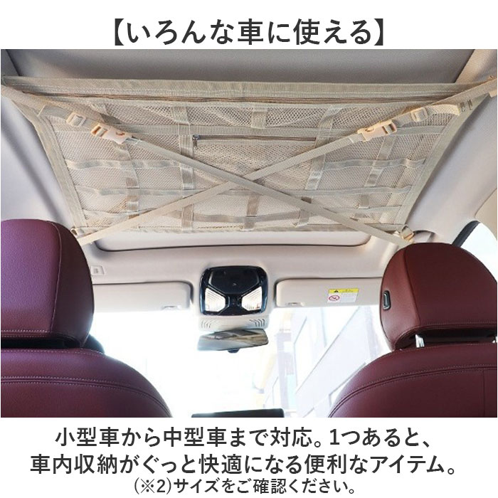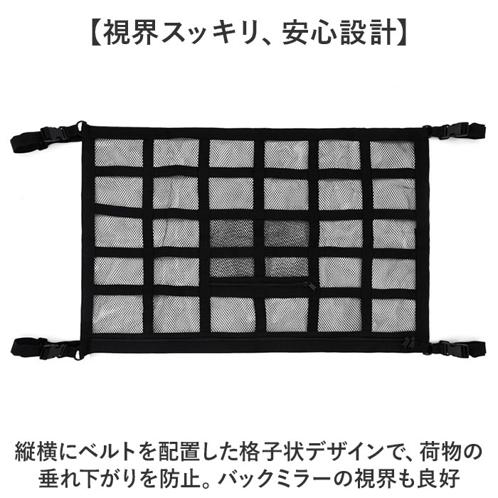 | 商品説明 | 【車内がスッキリ片付く!】天井のデッドスペースを有効活用できる、「車内天井ネット Mサイズ」が登場。【かさばる荷物もまとめて収納】アウトドアやお出かけ時の荷物置き場にぴったり!天井に収納すれば、足元広々で快適空間に。【小物も入るファスナーポケット付き】大・小のファスナー付きポケットが2つ。よく使う小物もサッと取り出せて便利!【取り付け簡単&調節OK】車内のアシストグリップ4ヶ所にバックルでカチッと固定。長さも調整できてぴったりフィット。(※1)アシストグリップは前後左右4ヶ所必要です。【視界スッキリ、安心設計】縦横にベルトを配置した格子状デザインで、荷物の垂れ下がりを防止。バックミラーの視界も良好【いろんな車に使える】小型車から中型車まで対応。1つあると、車内収納がぐっと快適になる便利なアイテム。(※2)サイズをご確認ください。 |