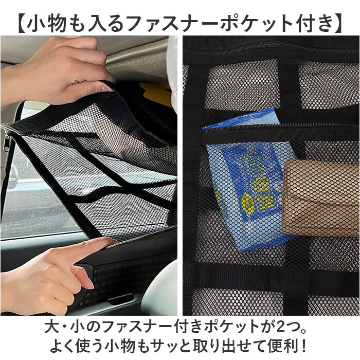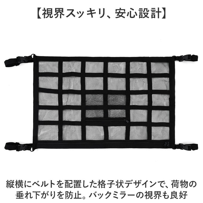 | 商品説明 | 【車内がスッキリ片付く!】天井のデッドスペースを有効活用できる、「車内天井ネット Sサイズ」が登場。【かさばる荷物もまとめて収納】アウトドアやお出かけ時の荷物置き場にぴったり!天井に収納すれば、足元広々で快適空間に。【小物も入るファスナーポケット付き】大・小のファスナー付きポケットが2つ。よく使う小物もサッと取り出せて便利!【取り付け簡単&調節OK】車内のアシストグリップ4ヶ所にバックルでカチッと固定。長さも調整できてぴったりフィット。(※1)アシストグリップは前後左右4ヶ所必要です。【視界スッキリ、安心設計】縦横にベルトを配置した格子状デザインで、荷物の垂れ下がりを防止。バックミラーの視界も良好【いろんな車に使える】小型車におすすめのコンパクトサイズ。1つあると、車内収納がぐっと快適になる便利なアイテム(※2)サイズをご確認ください。 |