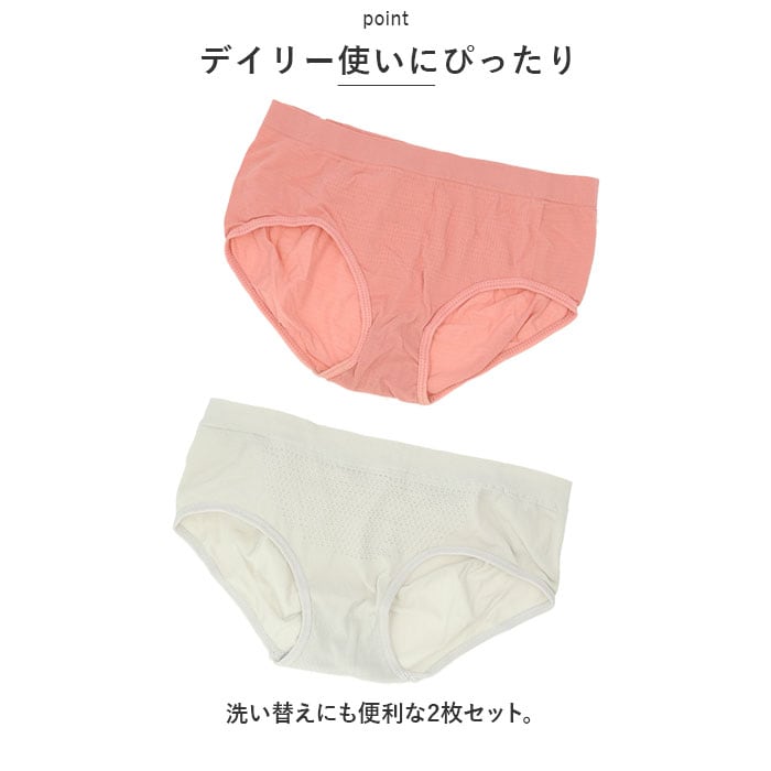 | 商品説明 | 心地よくすっきり♪ヒップアップショーツが登場。【お肌に優しいつくり】手触り柔らかな生地感。伸縮性もあり、締めつけ感なく穿けるのが嬉しい!【優しくサポート】ウエスト部分はゴム無し仕様。食い込むことなく優しいフィット感。【ストレスフリーな穿き心地】フロントは蜂の巣のようなハニカム素材で、ムレにくく快適。【キュッと上がるヒップライン】ヒップ部分は立体的な縫製になっており、美しいシルエットをメイク!【安心の二重構造】いや~な擦れや、デリケートゾーンへの刺激を防ぐクロッチ設計。【デイリー使いにぴったり】洗い替えにも便利な2枚セット。 |