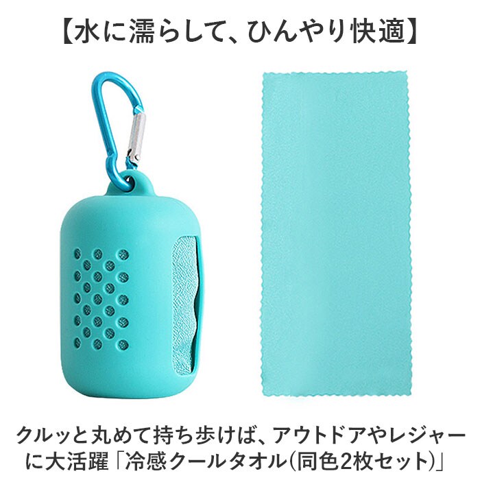 | 商品説明 | 【水に濡らして、ひんやり快適】クルッと丸めて持ち歩けば、お出掛けやレジャーに大活躍「冷感クールタオル(同色2枚セット)」【真夏のお出掛けの熱中症対策に】触れると熱を吸収する接触冷感生地を使用。水に濡らして軽く絞り、首に巻けばさらにひんやり♪【すばやく吸水、サッと乾く】薄手のマイクロファイバー素材が濡らすと水分を素早く吸収し、サッと乾いて涼やかな使い心地。【気化熱がひんやり爽快のヒミツ】水に濡らす→キュッと絞る→風に当てて数回振るだけ!気化熱が体の熱を逃がし、ひんやりが持続。【お肌の健康が気になる方に】ストールのように首に巻いたり肩に掛けることのできる大判サイズ!日焼け対策にもぴったり。【繰り返し使えてとってもエコ】必要なのはクールタオルと水道水だけ!保冷剤に比べ冷やし過ぎる心配がなく、とってもエコ。【オールシーズン快適な素材感】生地表面をキメ細かなクレープ状に仕上げ、サラリと快適な肌触り。春先や秋口のストールにも。【コロンと可愛いシリコンケース】小さく折りたたんでクルクルッと丸めると、付属のシリコンケースにコンパクトに収納可能。【パッと広げて、いつでも爽快】カラビナでバッグのハンドルやベルトループに掛ければ、暑さを感じた時にパッと取り出せる!【スタイルに合わせて選べる大人色】ファッションに合わせて選べるしっとりと深みのあるカラーバリエーションも魅力のひとつ。 |