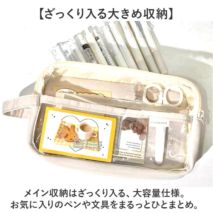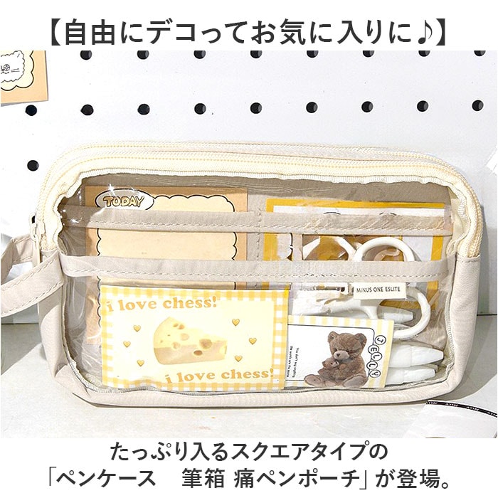 | 商品説明 | 【自由にデコってお気に入りに♪】たっぷり入るスクエアタイプの「ペンケース 筆箱 痛ペンポーチ」が登場。【デコ窓付!お好みにデコレーション】クリア窓にアクスタやバッチなど、大好きな推し活グッズをデコレーションできる優れモノ!【ざっくり入る大きめ収納】メイン収納はざっくり入る、大容量仕様。お気に入りのペンや文具をまるっとひとまとめ。【大きく開くから使いやすい◎】コの字ファスナーを開けば、ガバっと大きく開く作り。中身が良く見えるから取り出しやすい♪【小物ポケットがたくさん!】ふせん、のり、ハサミ、修正テープなどの小物を収納できるポケットを搭載。すっきり整理整頓【便利な持ち手つき】持ち運びや取り出しがしやすい持ち手つきタイプ。たくさん入れても使い勝手バツグン◎【シンプル×くすみカラーがCUTE♪】飽きの来ないシンプルデザインに優しいくすみカラーをドッキング。大人可愛い仕上がり。【お子様から大人まで大満足】学生さんも社会人も使えるデザインがGOOD。性別年齢関係なく持てる、マストバイなアイテム。【ポケット仕様】フロント収納:オープンポケット×3(すべてクリアポケット) |