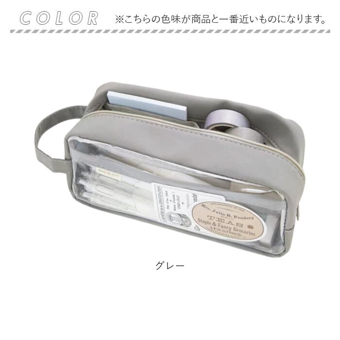 | サイズ | [縦]約10cm/[横]約21cm/[マチ]約7cm [持ち手]約16cm 【クリア部分】 [縦]約9cm/[横]約20cm ※サイズは当店計測の実寸サイズです。実際の商品ならびにメーカー表記サイズとは多少の誤差が生じる場合がございます。あらかじめご了承ください。 |