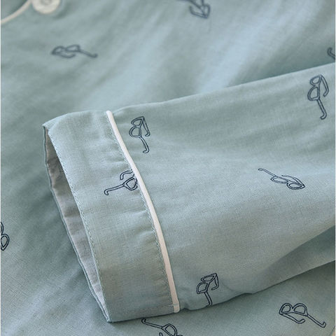 ガーゼパジャマ メンズ 上下セット 【ブルー】【M】
