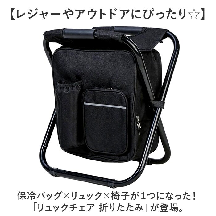 リュックチェア 折りたたみ 保冷保温【ブラック】