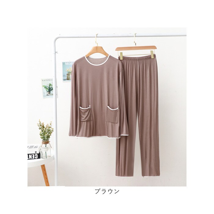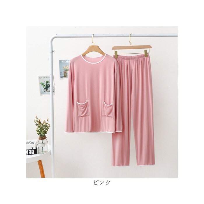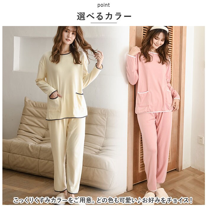 | 商品説明 | ロングシーズン使える!シンプルで可愛い☆ルームウエア、上下セットが登場。【シンプル可愛いデザイン】シンプルだけどちゃんと可愛い、オトナも着られるデザイン。パイピングのバイカラーがおしゃれ☆お家時間がもっと楽しくなるアイテム。【ロングシーズンOK】薄手の長袖なので、秋冬春とロングシーズン使える!寒くなってきたらインナーと羽織りをプラスして、長く愛用できる。【気持ちいい着心地】ストレッチ性に優れた、スパンデックスを使用した生地。寝ている間の動きにもフィットするので、着心地はバツグンに気持ちいい♪【上下セット】上下お揃いの嬉しいセットアイテム。上下揃うだけで、可愛さUP!お家でのおしゃれに手を抜きたくない方へオススメ。【リラックスタイムに】就寝時やリラックスタイムにぴったりなゆったりした着心地。ウエストはゴム仕様で、締め付け感が少なくラクチン♪【ポケットつき】デザインのアクセントにもなっている、ポケットつき!スマホなどを入れられるので、便利さも◎【選べるカラー】こっくりくすみカラーをご用意。どの色も可愛い♪お好みをチョイス! |