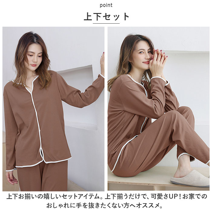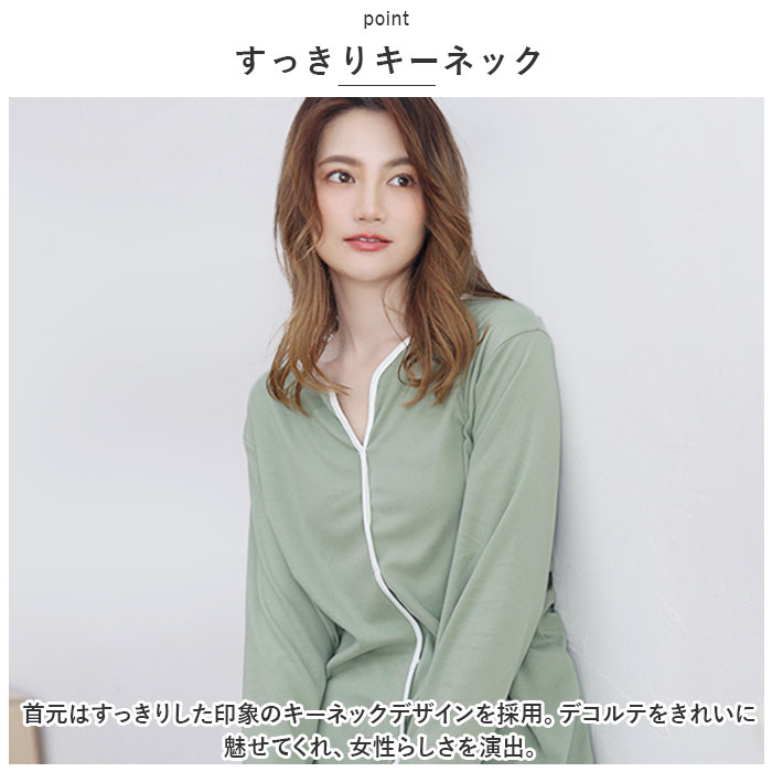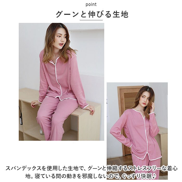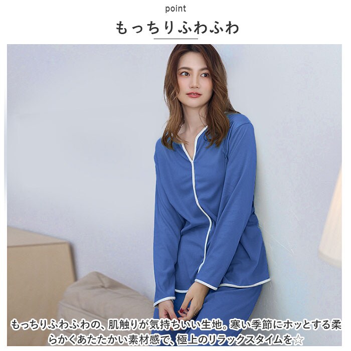 | 商品説明 | もっちりふわふわ♪グーンと伸びて気持ちいい、ルームウエア上下セットが登場。【グーンと伸びる生地】スパンデックスを使用した生地で、グーンと伸縮するストレスフリーな着心地。寝ている間の動きを邪魔しないので、ぐっすり快眠♪【もっちりふわふわ】もっちりふわふわの、肌触りが気持ちいい生地。寒い季節にホッとする柔らかくあたたかい素材感で、極上のリラックスタイムを☆【シンプル可愛いデザイン】シンプルだけどちゃんと可愛い、オトナも着られるデザイン。パイピングがおしゃれ☆お家時間がもっと楽しくなるアイテム。【すっきりキーネック】首元はすっきりした印象のキーネックデザインを採用。デコルテをきれいに魅せてくれ、女性らしさを演出。【ロングシーズンOK】薄手の長袖なので、秋冬春とロングシーズン使える!寒くなってきたらインナーと羽織りをプラスして、長く愛用できる。【上下セット】上下お揃いの嬉しいセットアイテム。上下揃うだけで、可愛さUP!お家でのおしゃれに手を抜きたくない方へオススメ。【選べるカラー】オトナっぽい落ち着きのあるくすみカラーのラインナップ。どの色も可愛い♪お好みをチョイス! |